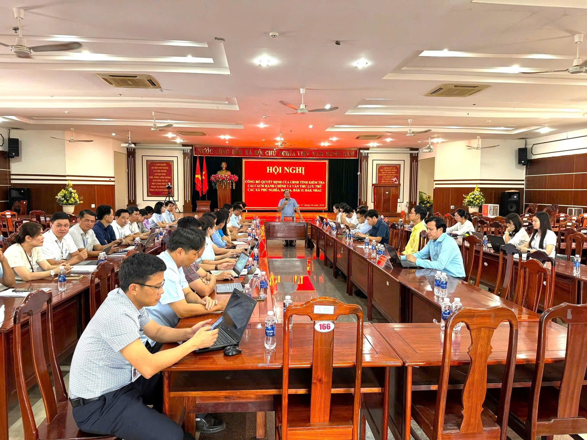 Ngày 07/4/2026, Đoàn kiểm tra công tác cải cách hành chính và kiểm soát thủ tục hành chính của tỉnh Đồng Nai (theo Quyết định số 658/QĐ-UBND ngày 11/02/2026 của UBND tỉnh) do ông Hà Thanh Tùng – Phó Giám đốc Sở Nội vụ làm Trưởng đoàn đã tổ chức công bố quyết định kiểm tra tại 04 xã: Đăk Ơ, Phú Nghĩa, Đa Kia và Đăk Nhau.